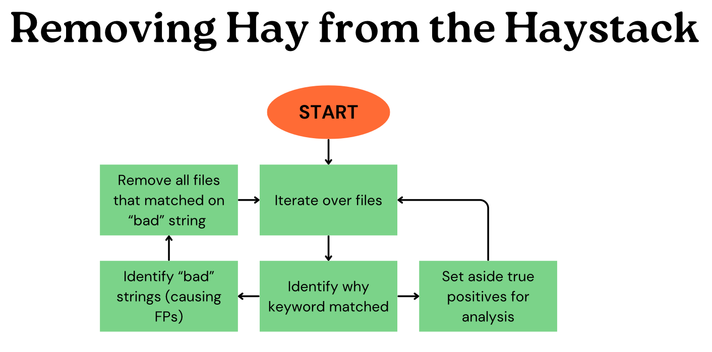 This technique focuses on removing known bads rather than finding true positives. You can try to find a needle in a haystack, but perhaps it’s more efficient to start removing hay from the pile than to start digging for the needle.