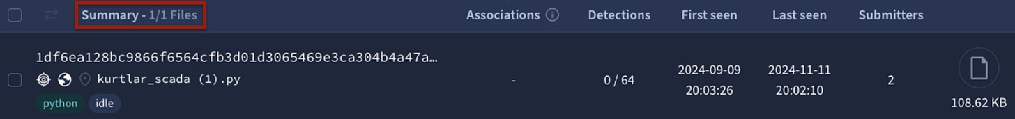 One day, I was searching VirusTotal for Python files with “SCADA” in the name that were submitted from Iran. It’s an incredibly simple query:
