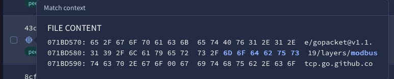 With that in mind, I decided to collect key terms from a variety of popular Modbus libraries and create a Yara rule that identifies overlaps between these keywords and executable files. This targets another generic MITRE ATT&CK for ICS TTP: T0869 - Standard Application Layer Protocol. I ran a VirusTotal retrohunt, and it returned several hundred files.