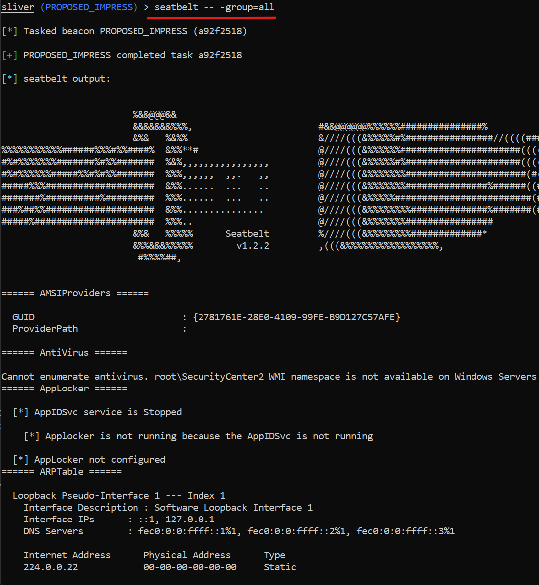 sliver(PROPOSED_IMPRESS)> seatbelt – -group=all
