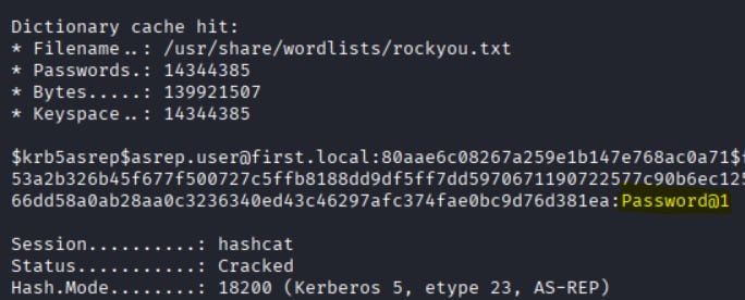 hashcat -m 18200 hash2.txt /usr/share/wordlists/rockyou.txt --force # AS-REP