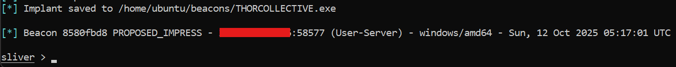 Before you can run BOFs from your beacon, you need a beacon. Below is a friendly screenshot of the exact moment you generate a Windows beacon binary from Sliver, because you deserve a moment of ASCII art glory before the chaos. Save that EXE somewhere obvious, and don’t forget a strong coffee.