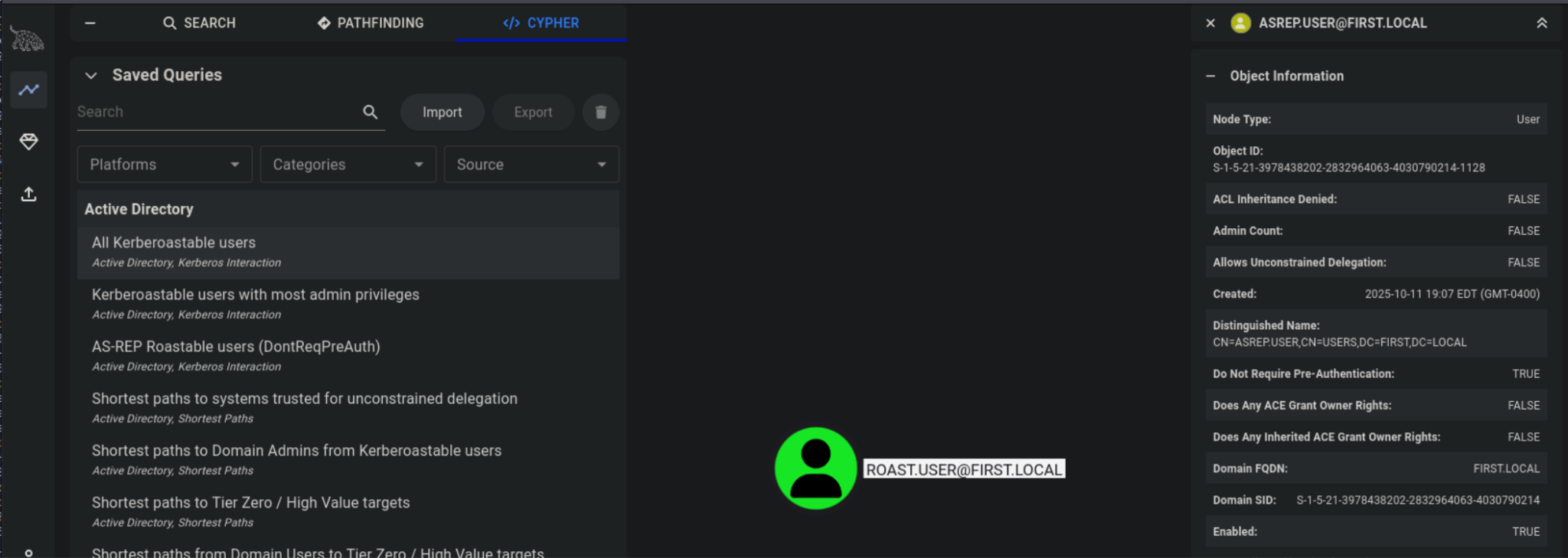 Why run it: To validate DC and workstation telemetry around Kerberos: ticket requests, AS-REP/AS-REP roastable accounts, and ticket forging/usage.